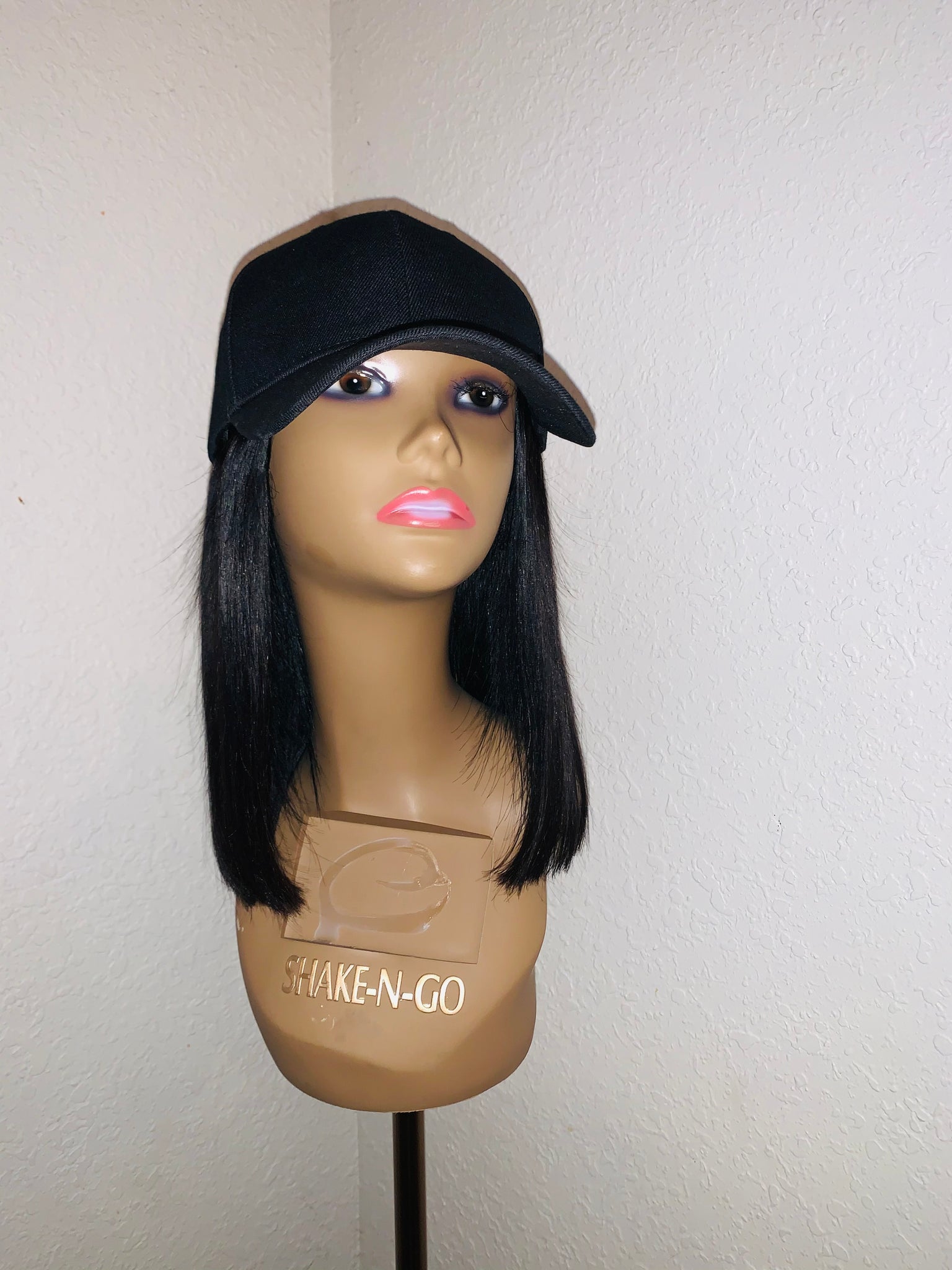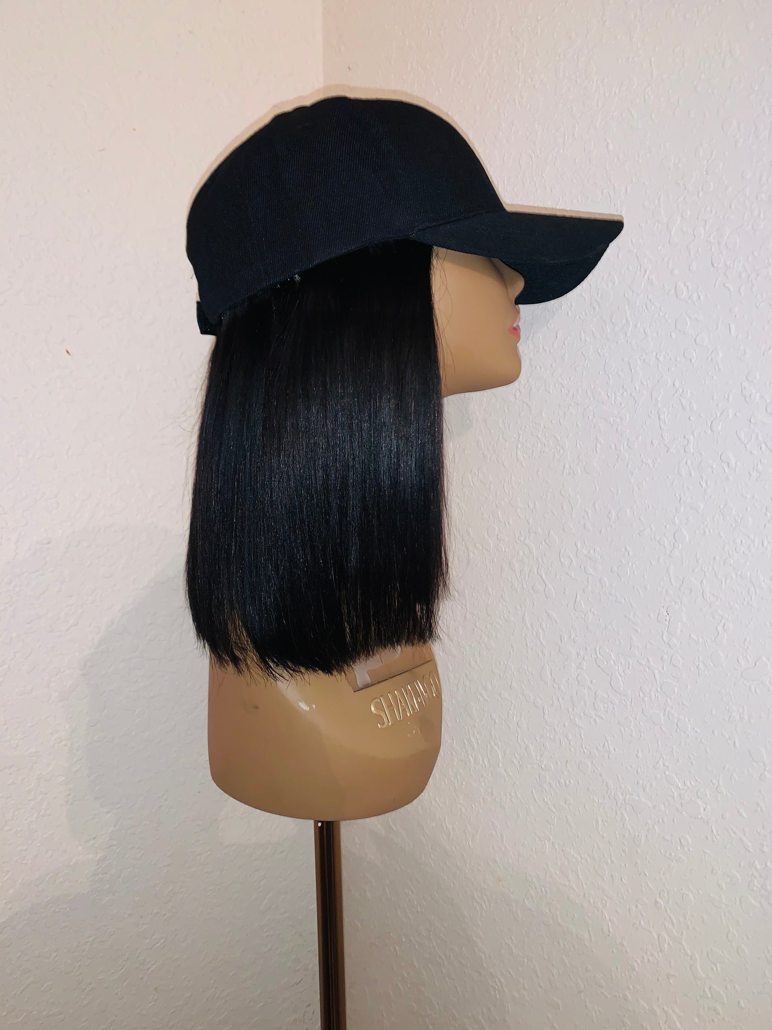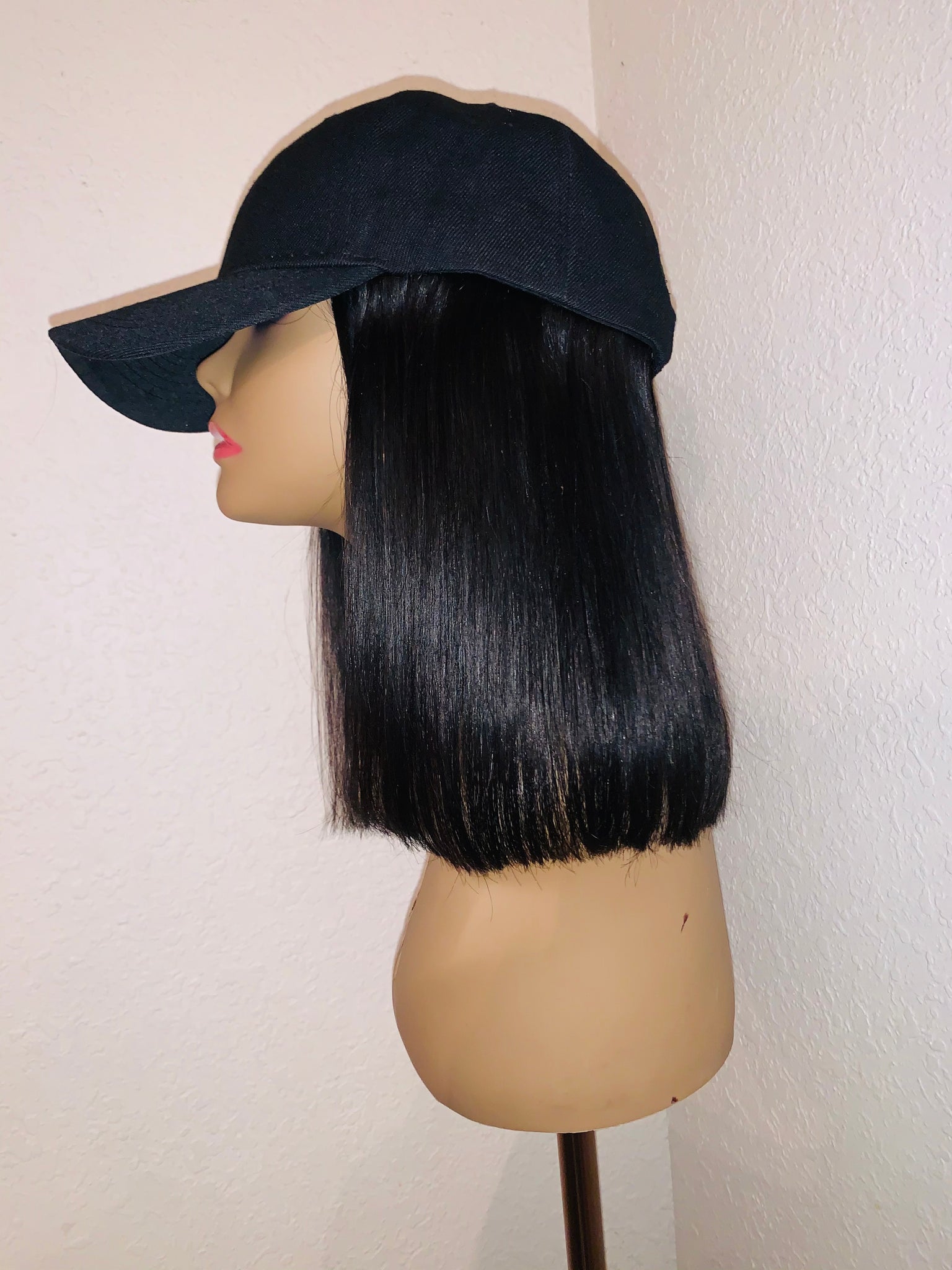12 inch 1b 100% unprocessed hair on black cap styled in a blunt cut